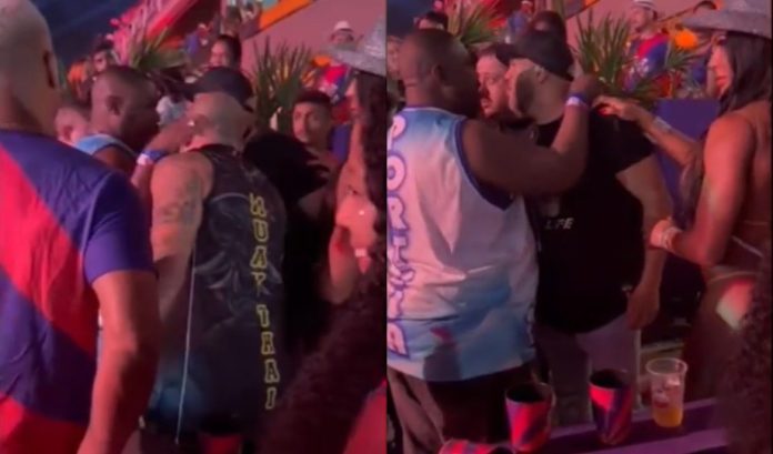Segundo informações, o artista teria se exaltado ao ser chamado de “caloteiro”, ele revidou o xingamento e tentou partir pra cima do homem que o afrontou, sendo contido por seguranças. Confira: