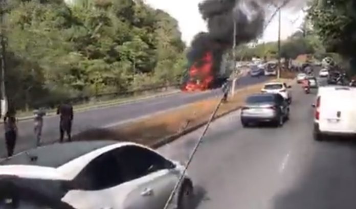Uma carreta da transportadora Bertolini pegou fogo na manhã desta terça-feira (28), no meio da Avenida do Turismo. O incêndio aconteceu no Tarumã, bairro localizado na Zona Oeste de Manaus.