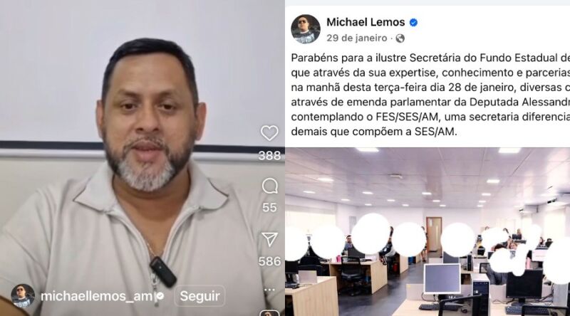 Nas publicações, ele afirmava que o Governo de Wilson Lima e a Secretária de Saúde Nayara Maksoud viviam um “momento histórico”, com mais insumos, equipamentos, medicamentos e valorização dos servidores. Também destacava a entrega de equipamentos no Delphina Aziz e apontava melhorias no atendimento, sempre atribuindo os avanços à política do Estado.