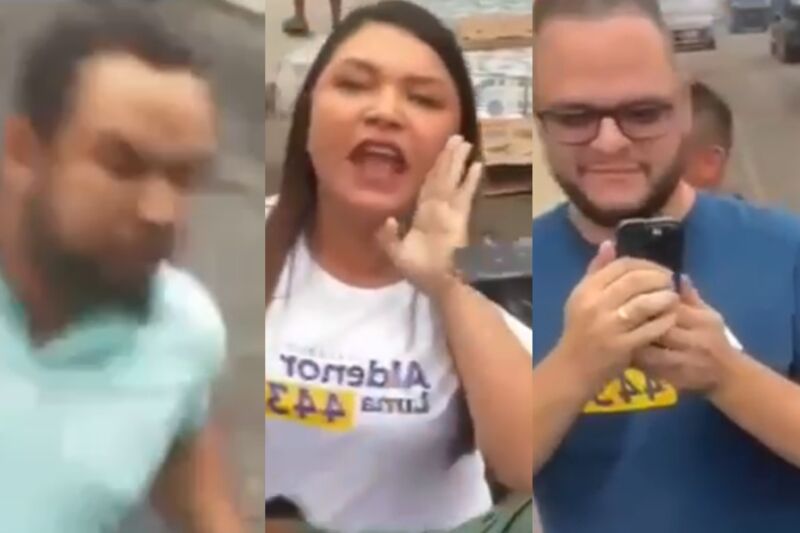 Na tarde desta terça-feira (27), um homem foi agredido fisicamente por um líder comunitário ligado a deputada estadual Joana Darc, em Manaus. A parlamentar ainda aparece gritando e filma a situação vestida com uma camisa com o nome do marido que é candidato a vereador. O episódio ocorreu após um cachorro ser atropelado acidentalmente por um carro compressor de asfalto.