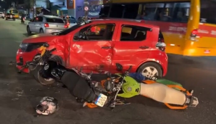Segundo informações de testemunhas, o motorista do carro teria tentado cruzar a avenida, mas acabou sendo atingido na lateral por dois motociclistas, que foram arremessados por alguns metros devido ao impacto do acidente.