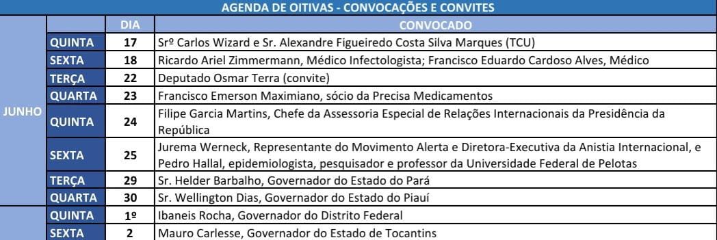 A data foi marcada em reunião na tarde desta quarta-feira (16) entre Aziz e os senadores do G7, grupo majoritário da comissão formado por parlamentares independentes e de oposição.