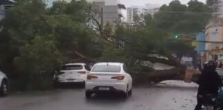Carro é atingido por árvore gigante durante intenso vendaval em Manaus;...