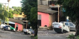 Veículo fica capotado e supostos assaltantes feridos durante perseguição policial na...