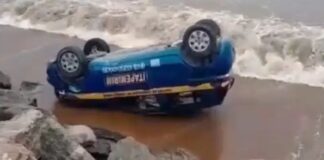 Carro de Autoescola vai parar no mar após aluna confundir pedais