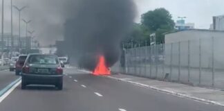Princípio de incêndio atinge ônibus articulado na Avenida Constantino Nery em...