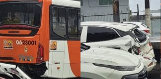 Veículo fica destruído após se envolver em acidente com ônibus na...