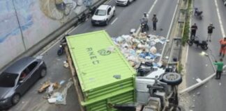 Carreta de Lixo tomba na Avenida das Torres e deixa trânsito...