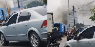 [Vídeo]: Caminhão da Bemol pega fogo na Bola do Coroado na...