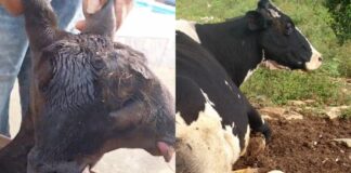 Bezerro com duas cabeças e quatro olhos completa 20 dias e...