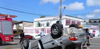 Tentativa de ultrapassagem termina em capotamento na Zona Sul de Manaus