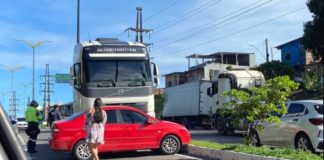 Em Manaus, trânsito fica lento após colisão envolvendo caminhão acontecer na...