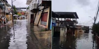 Alagamento provocado por forte chuva em Manaus prejudica foliões do Carnaval