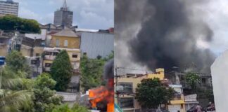 Em Manaus, incêndio atinge residência e fumaça se espalha no centro...
