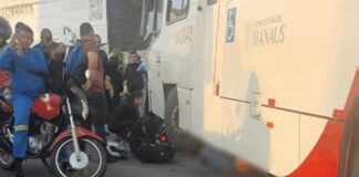 Motociclista e passageiro ficam feridos após serem arrastados por ônibus na...