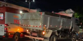 Motociclista quebra a perna ao colidir com caçamba na zona norte...