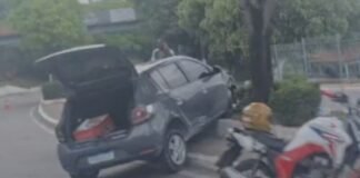 Veículo fica destruído após colidir contra árvore em frente à universidade...