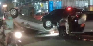 Após colisão, carro capota na Avenida Ovídio Monteiro em Manaus