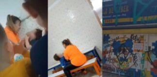 Crianças são vítimas de maus-tratos por professora flagrada puxando e empurrando...