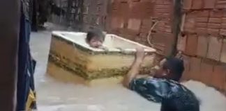 Criança é resgatada em caixa de isopor durante forte temporal na...