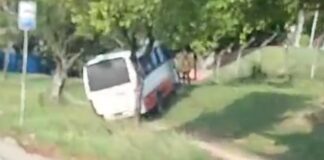 Micro-ônibus desgovernado vai parar dentro de mata após condutor perder controle...