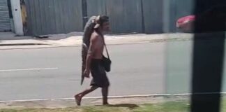 [Vídeo]: Homem é flagrado caminhando com jacaré nas costas em via...