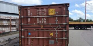 Carreta tomba e contêiner despenca durante curva fechada no Distrito Industrial...
