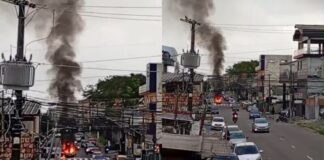 Carro pega fogo e provoca congestionamento na Praça 14 em Manaus