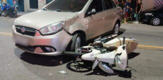 Mulher fica ferida após colisão entre moto e carro na Avenida...