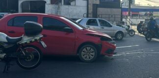 Passageira fica ferida durante acidente envolvendo carro e moto na...