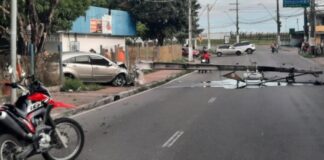 Veículo colide e derruba poste na Avenida Djalma Batista em Manaus