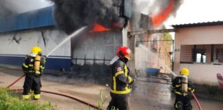 Corpo de Bombeiros combate incêndio em galpão de fábrica na zona...