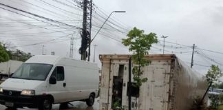 Em Manaus, carga é abandonada por motorista após carreta tombar na...