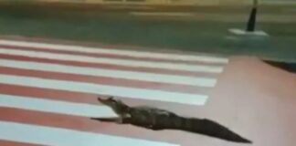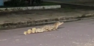 Jacaré é flagrado perambulando em frente à shopping no Chapada em...