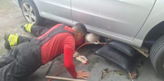 Corpo de Bombeiros captura jiboia que estava no motor de veículo...