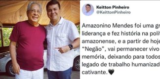 Prefeito de Coari, Keitton Pinheiro lamenta falecimento de Amazonino Mendes