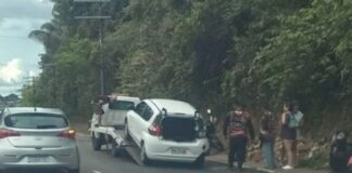Veículo é atingido por motociclista na Avenida Rodrigo Otávio em Manaus