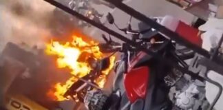 [Vídeo]: Motocicleta é consumida pelo fogo no Conjunto Manôa em Manaus