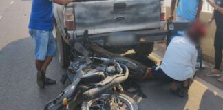 Motociclista fica ferido após colidir contra caminhonete na Ponte do Rio...