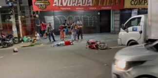 Mototáxi fica ferido após ser atingido por caminhão na Zona Leste...