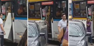 Vídeo: homem é flagrado tentando transportar geladeira em ônibus lotado