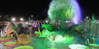 Com formato de nuvem de neblina, chafariz de 15 metros da...