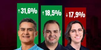 David Almeida aparece com 31,6%; Roberto Cidade, 18,5% e Amom Mandel,...