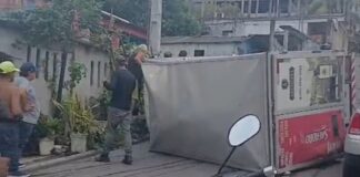 [Vídeo]: Caminhão tomba no meio de via pública e atinge residência...