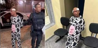 Vídeo: Homem vestido de vaca é preso pela polícia: “Roubo com...