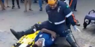 Socorrista escorrega e cai em cima de paciente após acidente; assista!