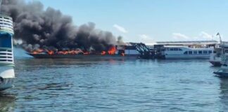[Vídeo]: Incêndio destrói lancha durante manutenção e assusta moradores