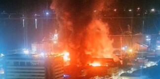 [Vídeo]: Incêndio de grandes proporções atinge depósito utilizado pela Receita Federal