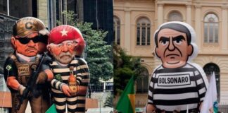 Bonecos infláveis de Lula e Bolsonaro aparecem vestidos de presidiários nas...