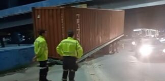 Trânsito fica lento após contêiner se desprender de carreta na Zona...